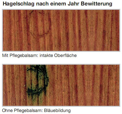 Regelmäßige Anwendungen der Aidol Pflegesets verlängern die Renovierungsintervalle von Fenstern und Haustüren aus Holz. Der spezielle Aidol Pflegebalsam verschließt Mikrorisse, die in der Beschichtungsoberfläche z.B. durch Hagelschlag entstehen können.