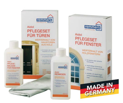 Die Holzoberflächen Ihrer Fenster /Haustüren sind vielen Witterungs- und Umwelteinflüssen ausgesetzt. Sonne, Regen, Schnee, Hagel und auch mechanische Belastungen setzen Ihrem Holz schwer zu. So wie Sie Ihr Auto pflegen, können Sie nun auch Ihre wertvollen Holzoberflächen schützen – mit dem Aidol Pflegeset für Fenster / Türen der Firma Remmers.
